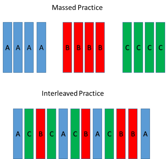 Taylor, K., & Rohrer, D. (2010). The effect of interleaving practice. Applied Cognitive Psychology, 24, 837–848.