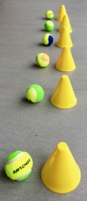 Een stap moeilijker is de 1-1 relatie maken tussen willekeurige voorwerpen. Bijvoorbeeld: “Leg bij elke kegel een balletje.”