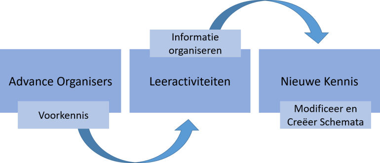 De Amerikaanse psycholoog David Ausubel schreef in 1968: ‘De meest invloedrijke factor voor leren is dat wat de lerende al weet.’ Wat we leren, moeten we volgens Ausubel onderbrengen in wat we al weten. Deze kennis zit in ons langetermijngeheugen, in de vorm van schema’s: een soort mentale raamwerken of kapstokken, waaraan de nieuwe informatie opgehangen wordt. Zonder kapstokken kunnen we die nieuwe informatie nergens aan ophangen. Dit noemde hij een advance organizer. Een organizer, volgens Ausubel, is meer algemeen, meer abstract en meer omvattend dan wat er geleerd moet worden.