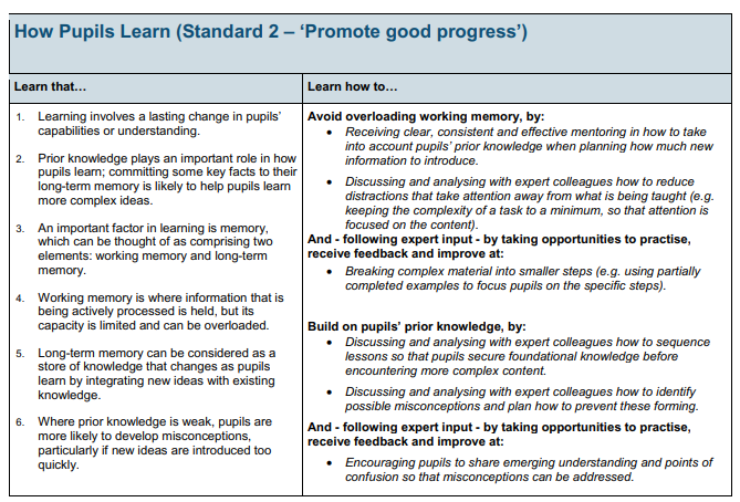 How Pupils Learn (Standard 2 – ‘Promote good progress’)
