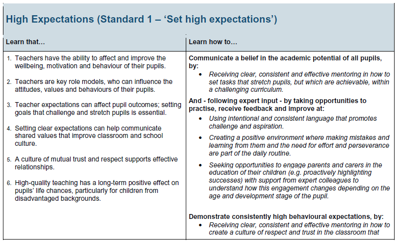 Niemand wordt als topleraar geboren: dat word je dankzij een goede vooropleiding (oftewel een gestructureerde introductie tot de kern van kennis, gedrag en vaardigheden die goed onderwijs definiëren), dankzij je ervaring en de coaching van deskundige collega’s, en door voortdurend bij te leren. Het Britse ITT-kader bestaat uit acht standaarden:
