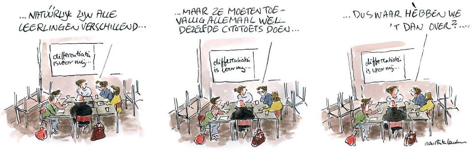 De selectie uitstellen zou een oplossing kunnen zijn. Je neemt dan de druk van de maatschappelijke waardering – althans voor even – weg. Maar die komt later natuurlijk weer terug. Pedagogen zouden zich niet met gelijke kansen moeten bezighouden. Die zijn er niet. Dat wil niet zeggen dat je als pedagoog niet druk zou moeten maken over maatschappelijke ongelijkheid. Dat moet je zeker. Maar dat vereist geen pedagogische actie, maar een politieke. Pedagogische gezien gaat het erom dat elk kind zich kan ontwikkelen en vormen. En inderdaad, dan komt het op zaken aan die Dick van der Wateren noemt. Het gaat erom dat elk kind ‘iemand’ kan worden, zoals Langeveld zei, of met de woorden van Biesta, als subject kan verschijnen. Om nogmaals Langeveld aan te halen: ‘Elk kind is er een.’
